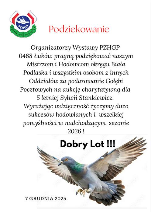 Zwracamy się z uprzejmą prośbą do Hodowców o przekazanie gołębi na licytację.